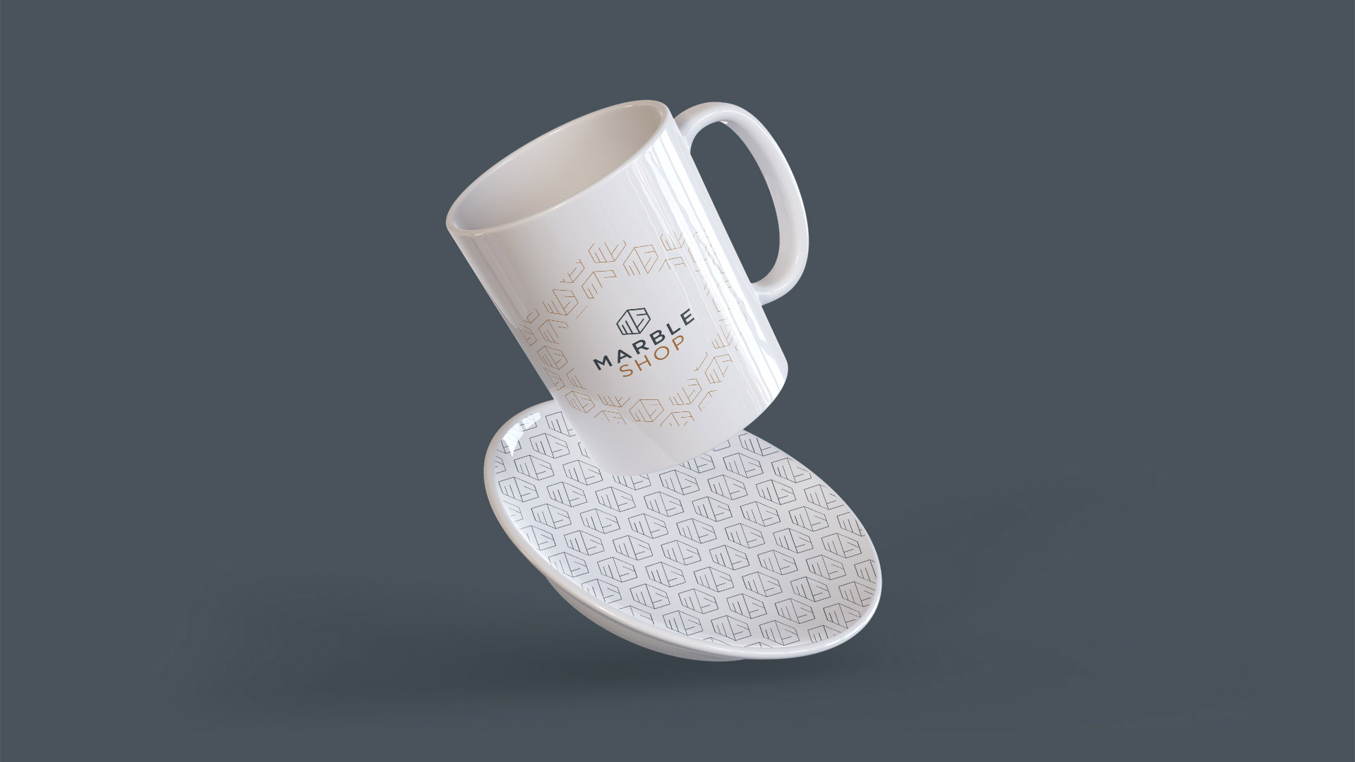 marble shop logo design branding elements mug production